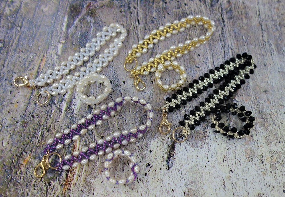 共通素材:TOHOビーズ、ニッケルフリー鍍金金具、MIYUKIビーズ用糸などを使用しています。