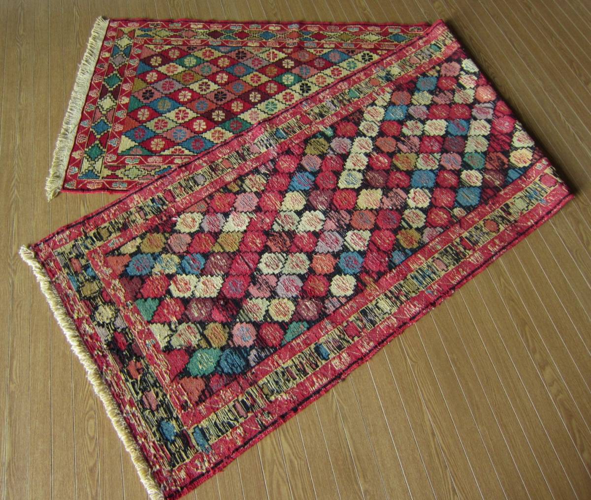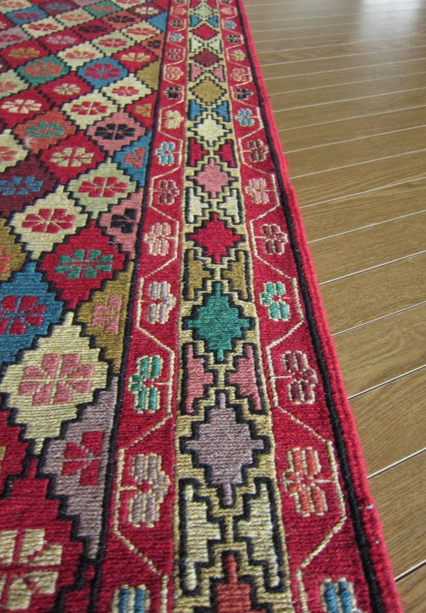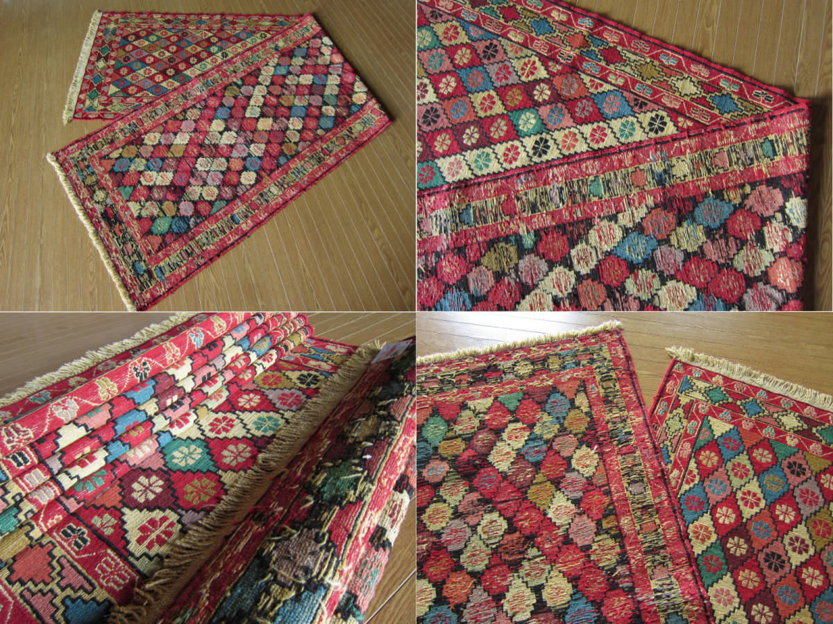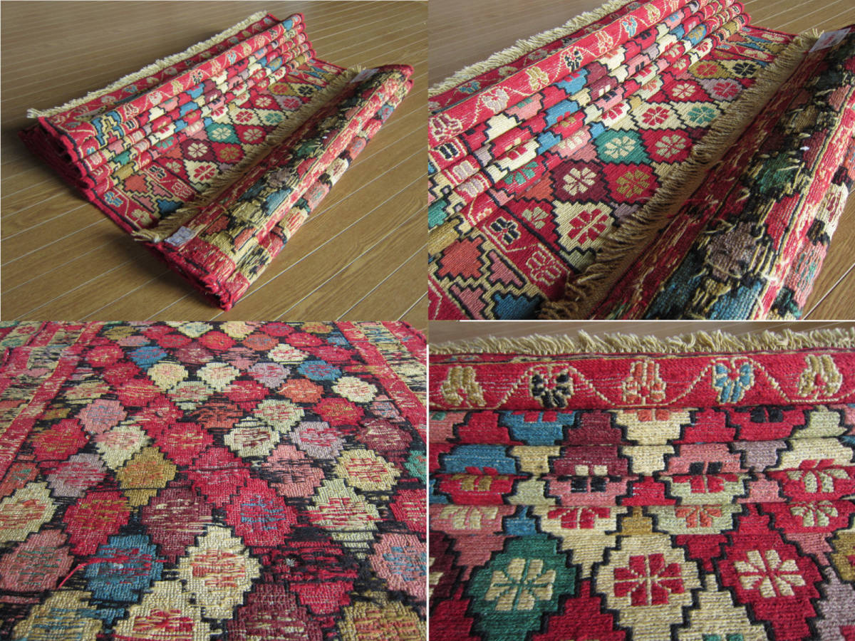 商品説明 | ★素材 : ウール・手織り・スマック織り ※スマック織りとは、イランのキリムの織り方の技法です。 土台の縦糸と横糸の上にもう一本横糸を絡めるように 巻き込んで織っていく高度なテクニックで、 刺繍のように細かな文様を描けることができます。 スマック織りは裏面に模様の糸を渡してあるので 片面使いのキリムになります。 ★サイズ : 約 288×80 cm (房を含まない長さです) ★産地 : イラン・アゼルバイジャン ★状態 : 新品 kxpgs342+ZIBACARPET絨毯 kxpgs342+ZIBACARPET取扱いペルシャ絨毯 FARSHEZIBA_KILIMキリム |