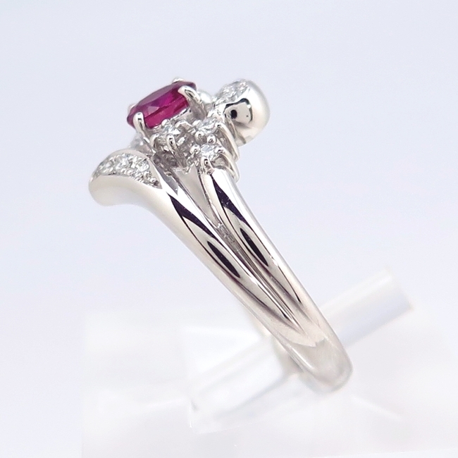 【タサキ/田崎真珠】 *Pt900 *ルビー:0.370ct *ダイヤモンド:0.150ct *モチーフの大きさ(約):縦12.4mmx幅11.3mmx厚4.7mm *ルビーの大きさ(約):縦4.5mmx幅3.7mm *号数:12号 *アーム幅(約):2.5mm~3.8mm *重さ(約):6.6g *ランク:A ※詳細はお気軽にお問い合わせください。 (GR RR RD) 10005328