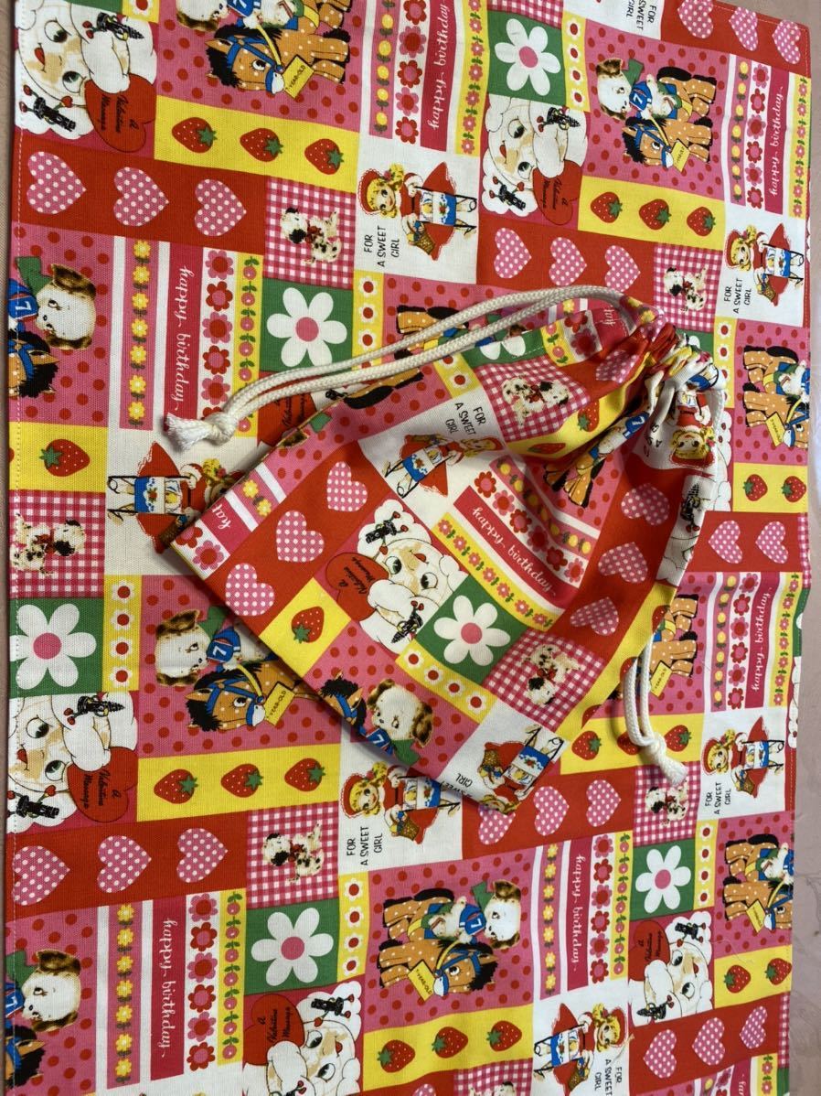 No.113 裏付ランチョンマット&巾着 ハンドメイド  40x60 ガールズ 女の子