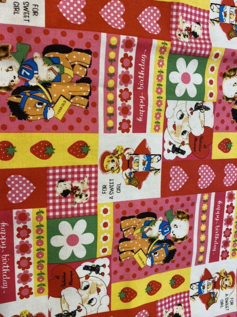 表面 ガールズ柄  裏面  ピンク色むら染生地に小花柄