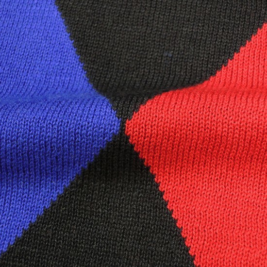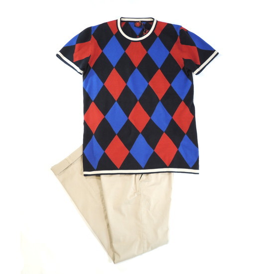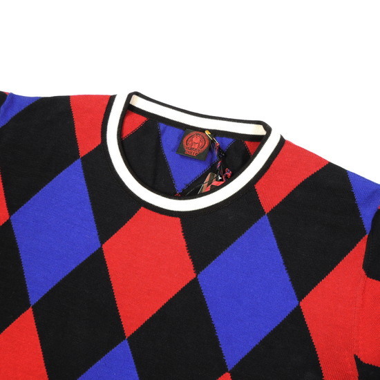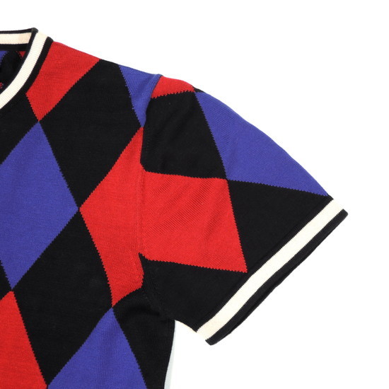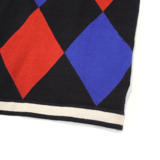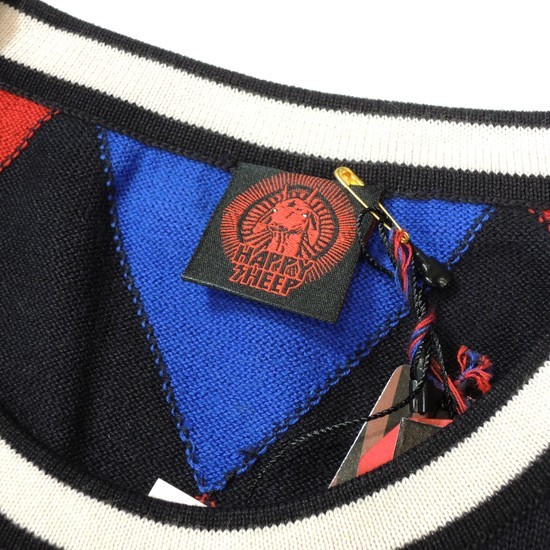 アイテム : コットンクルーネックニット 素材 : 綿100% 色・柄 : ブラック×ブルー×レッド・ダイヤ柄 サイズ : M 着用シーズン : 春夏 状態 : 新品未使用 生産国 : ネパール製 定価 : ¥48,400 撮影使用サイズ : S 付属品 : なし | ||||