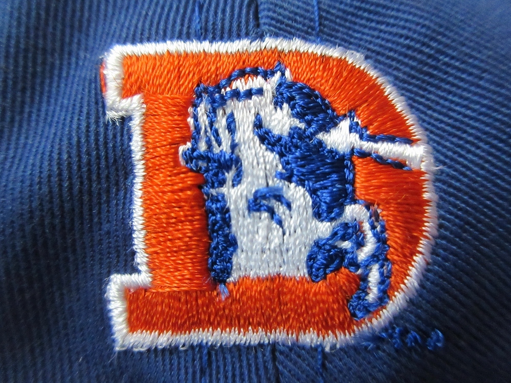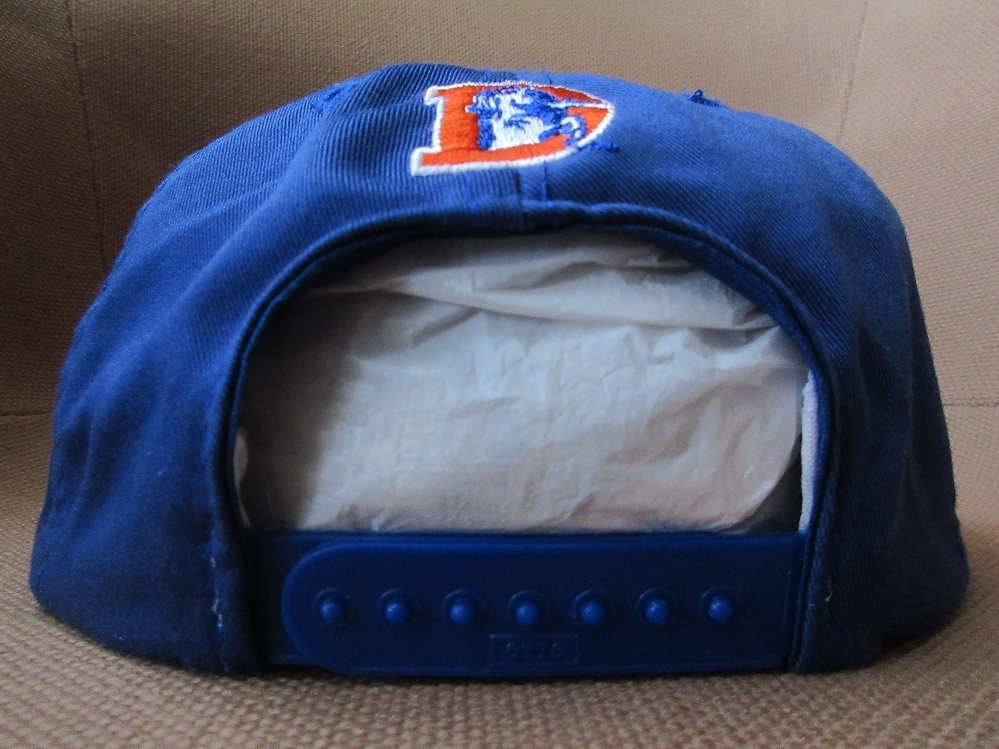 今から20年以上前の、80年代~90年代初頭頃にリリースされたと思われる、〔Denver Broncos(デンバー・ブロンコス)〕の、キャップフロント部に、シンプルながらインパクトのある「D野生馬(馬/ウマ/Horse/ホース)ロゴ Broncosのスクリプト(Script/筆記体)ロゴ DENVER」ロゴ(LOGO)の刺繍、後頭部スナップバック上部付近に「D野生馬(馬/ウマ/Horse/ホース)」ロゴ(LOGO)の刺繍が施された、「AMERICAN NEEDLE(アメリカンニードル/製造・OTTO(オットー)」社製の、〔オールド(Old/Vintage/ヴィンテージ)・AMERICAN NEEDLE製・ロゴ刺繍・スナップバック・キャップ〕になりますので、現在では大変希少かつ、極めて入手が困難かと思われます。