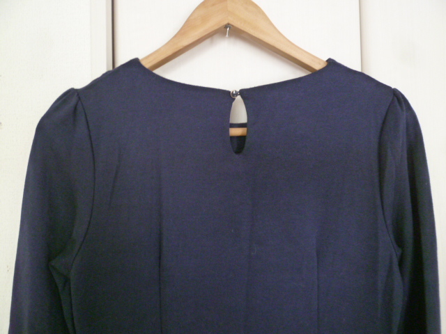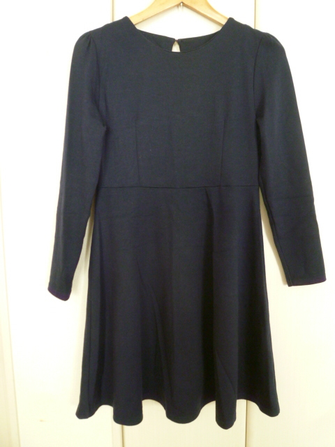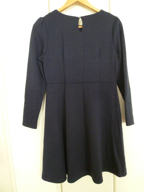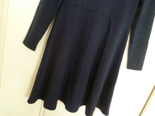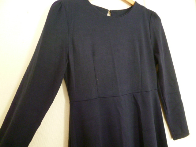 VIS/ヴィス紺シンプルフレアーワンピースM/ネイビージュン長袖膝丈△217