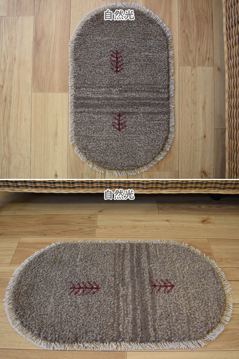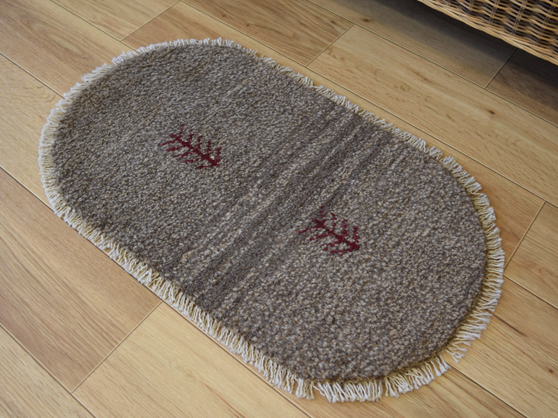 新品 ペルシャ ギャッベ 足元 玄関 ドアマット ミニラグ 楕円形 小判型 58 x 34 cm No.1311 天然 肉厚 ウール 手織り ギャベ