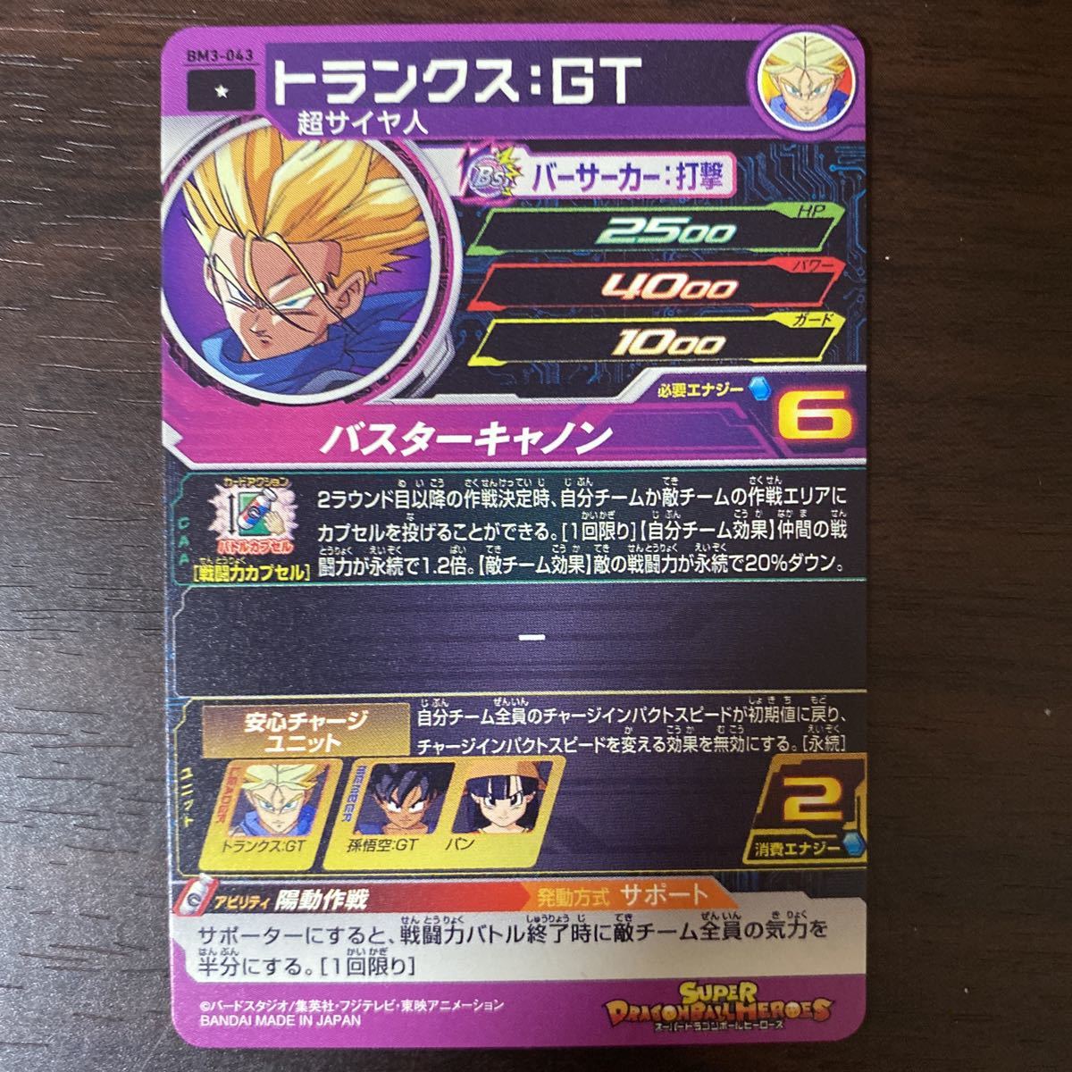 BM3弾コモン/ トランクス:GT(超サイヤ人)/ BM3-043/ 技:バスターキャノン/ スーパードラゴンボールヒーローズ/ レアリティ:☆/ BANDAI