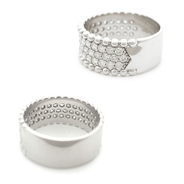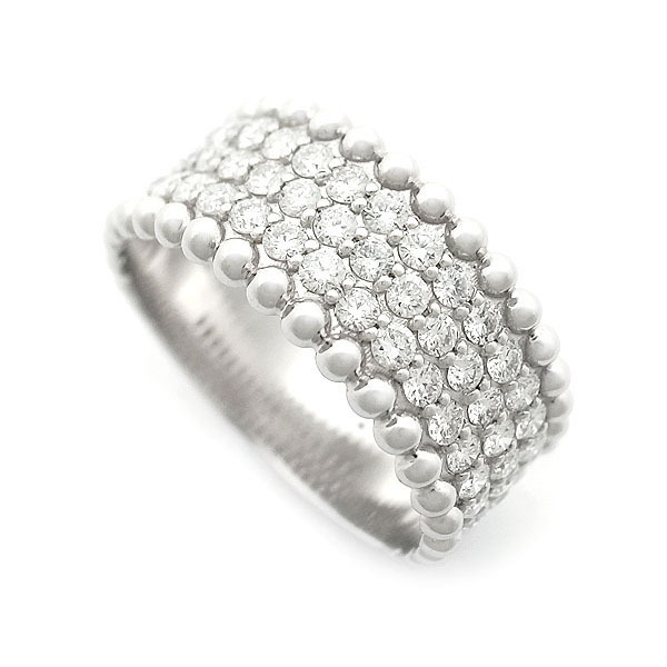 コメント 華やかで美しさが際立つパヴェダイヤ。ホワイトゴールドのビーズ状のラインで縁取り、より存在感が際立ち指先で繊細な輝きを放つリングです。