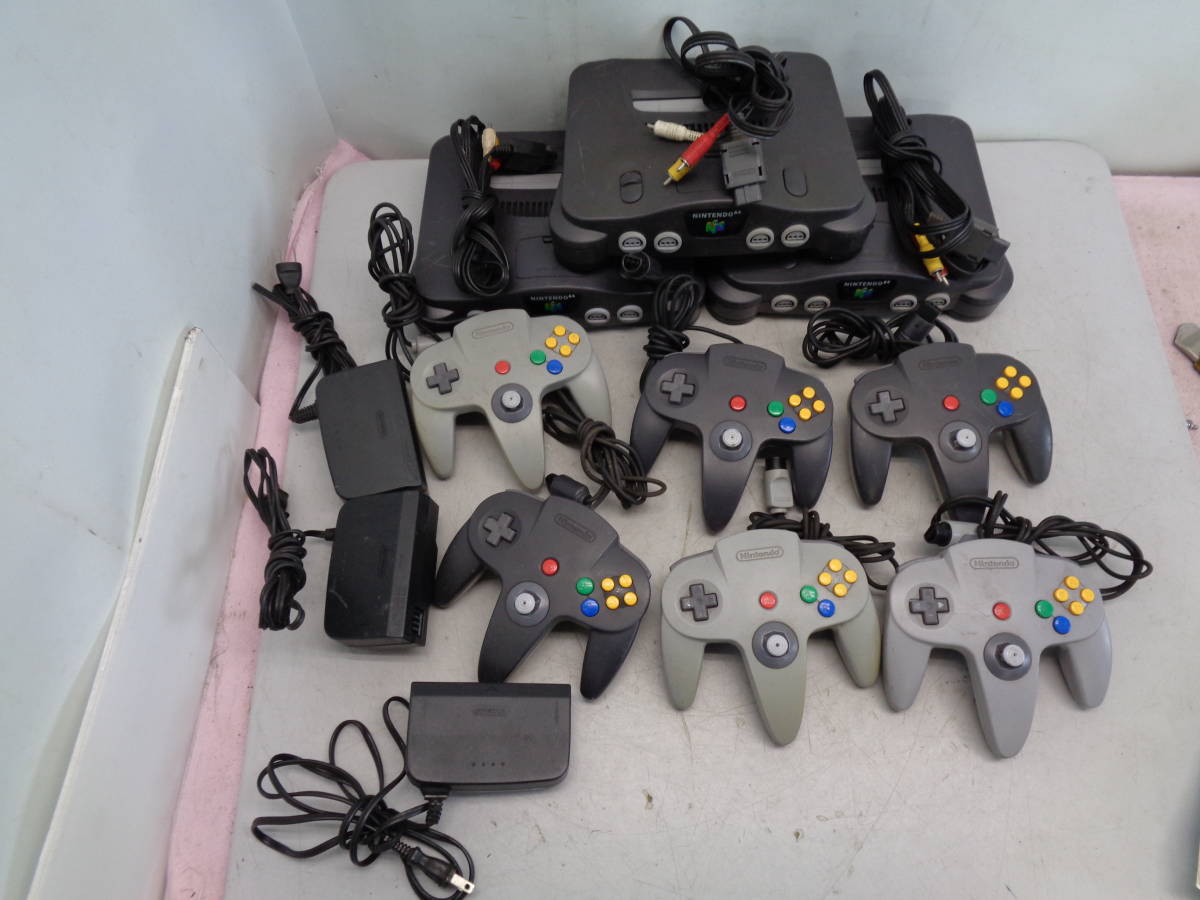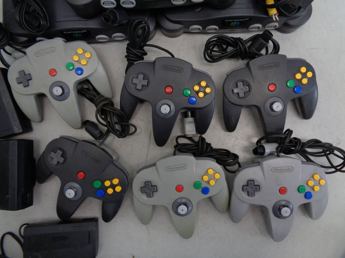 【NINTENDO】ニンテンドウ64 本体(NUS-001)/3 コントローラ/6 ACアダプタ/3等