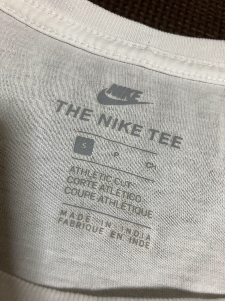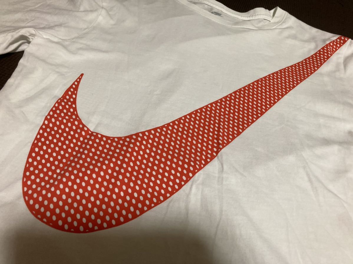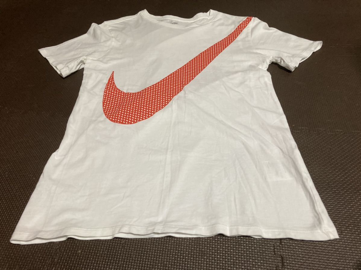 美品NIKE白、ロゴ赤、半袖ストレッチトップス