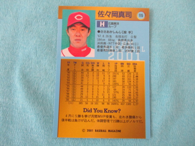 ★BBM 2001★〔115 佐々岡真司 広島東洋カープ〕サイン (印刷) トレカ♪