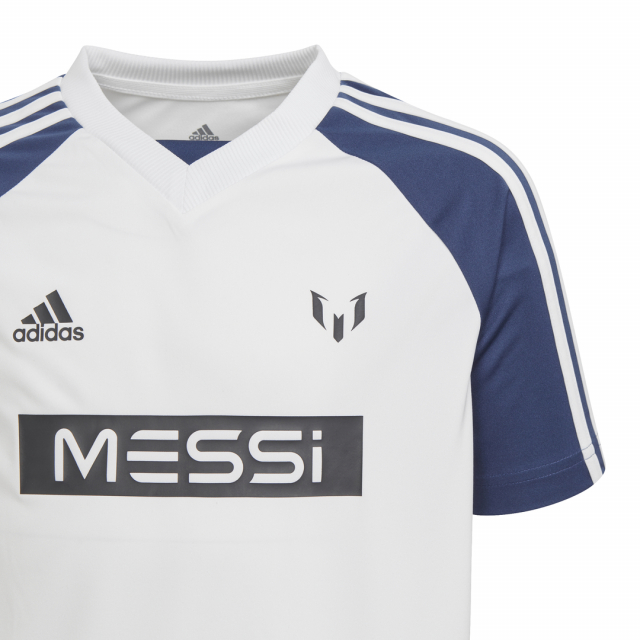 アディダス ジュニア BMESSIS Tシャツ&ハーフパンツ 上下セット 140 ホワイト/インディゴ 子供用 キッズ トレーニングウェア セットアップ