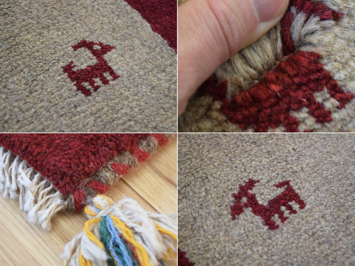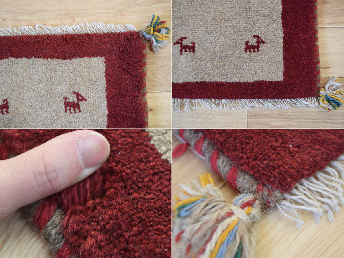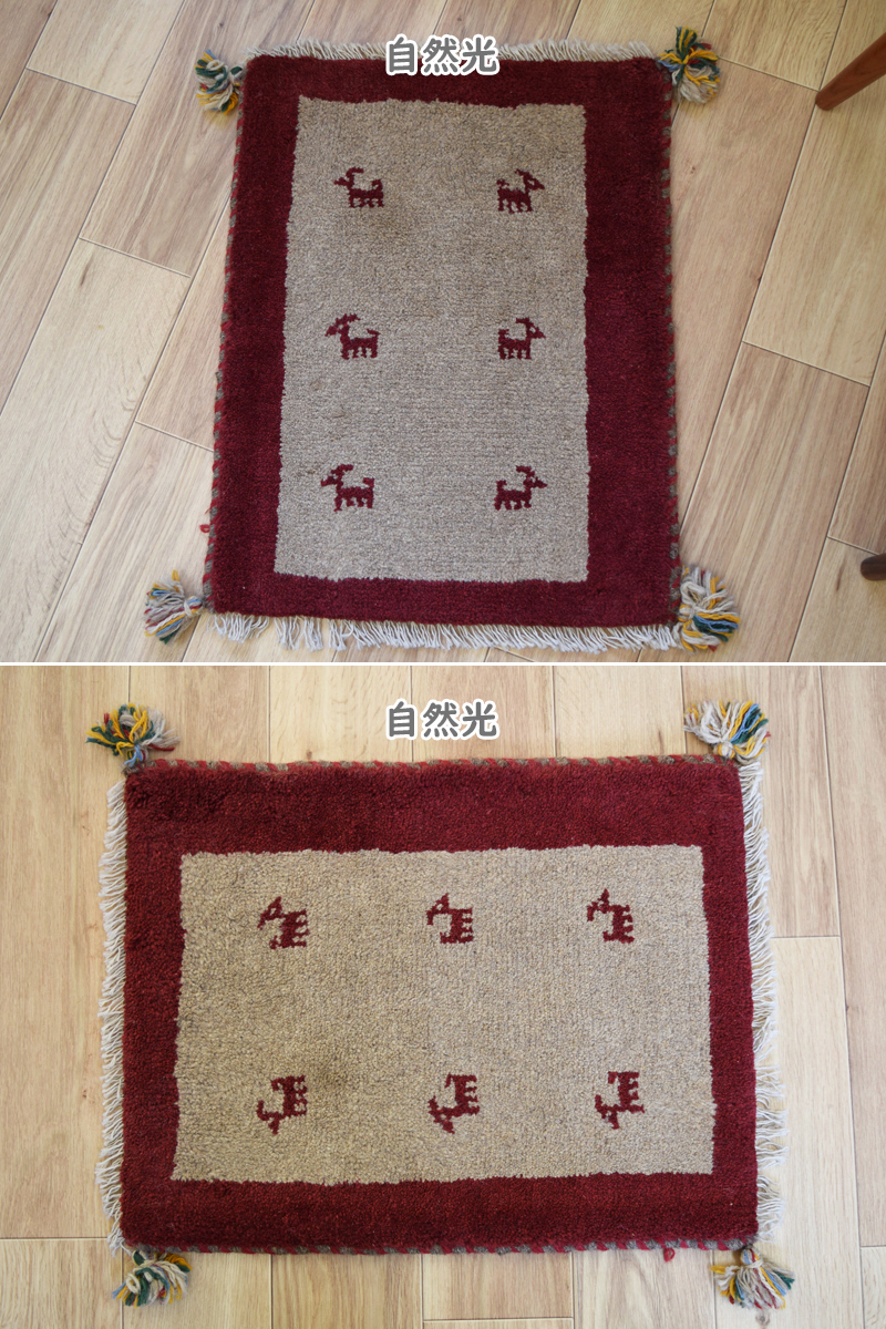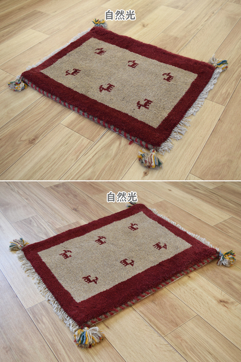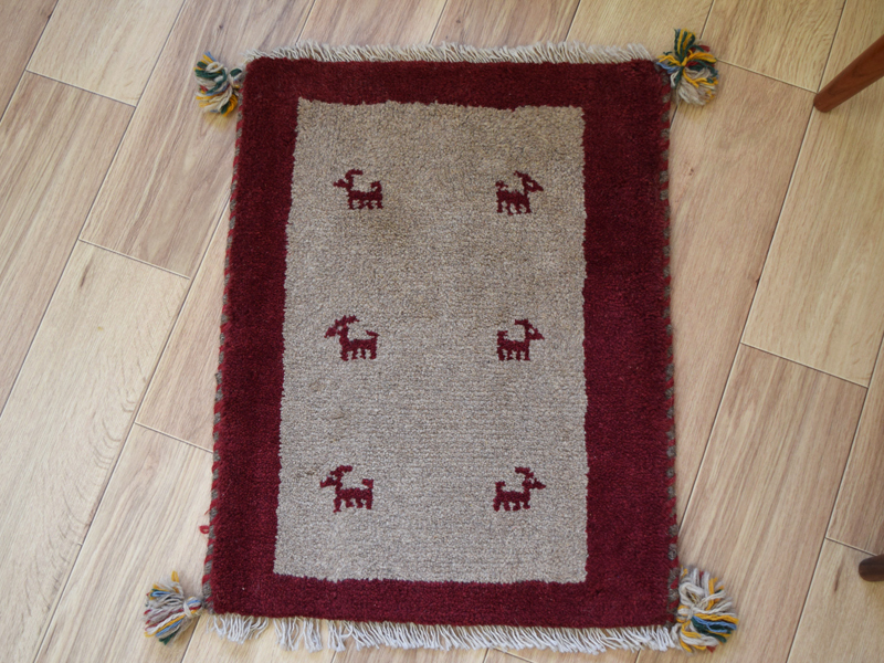 新品 ペルシャ ギャッベ 足元 玄関 ドアマット ミニラグ 55 x 43 cm No.637 天然 肉厚 ウール 手織り ギャベ