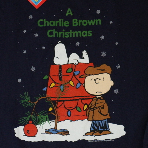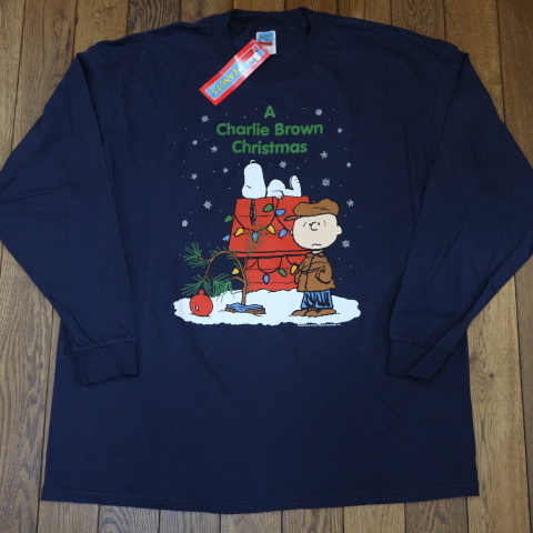 新品 90s~ PEANUTS SNOOPY 長袖 Tシャツ 2XL ネイビー チャーリーブラウン クリスマス