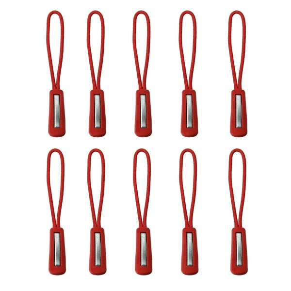 ジッパープル 反射材付き ファスナー チャック 取り付け簡単 つかみやすい ノンスリップ ジッパータブ プルコード 10本セット(レッド)