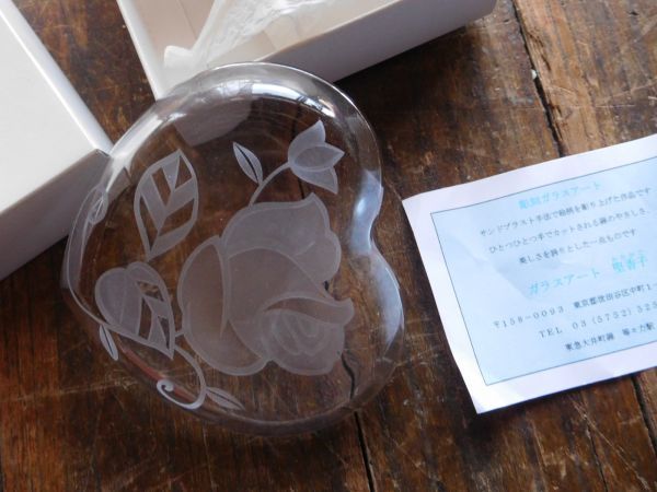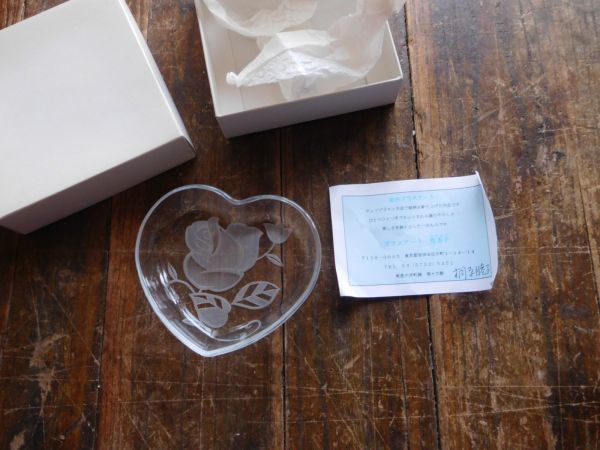 彫刻ガラスアート ハート バラ 12X11H2CM 堅香子 桐原睦子