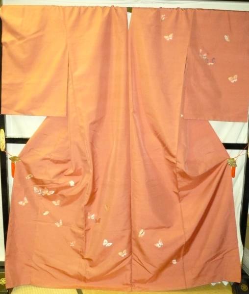 ■♪◇すくい【仮絵羽☆紬地付下げ☆未仕立△朱ピンク◇●反物巾37㎝ ※とても着易く上品なご商品です。単衣でも袷にも、お仕立にあいます。●画像でのご判断で、ご入札をお願い致します。ノークレームノーリターンでのご落札をお待ちしております。