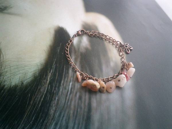 フラッパーガール・・シリーズです♪可愛い人・・モーヴピンクでまとめた可愛いブレスレットです♪ピンクオパールのさざれをトップに集めたキュートなブレスレットです♪長さは全長22センチ位で調節自由です♪お揃いのネックレスも出品しています♪♪シンプルで飽きのこないいつまでも着けられるデザインを考えて作りました!ハンドメイドをご理解頂いてノークレーム、ノーリターンでお願いします