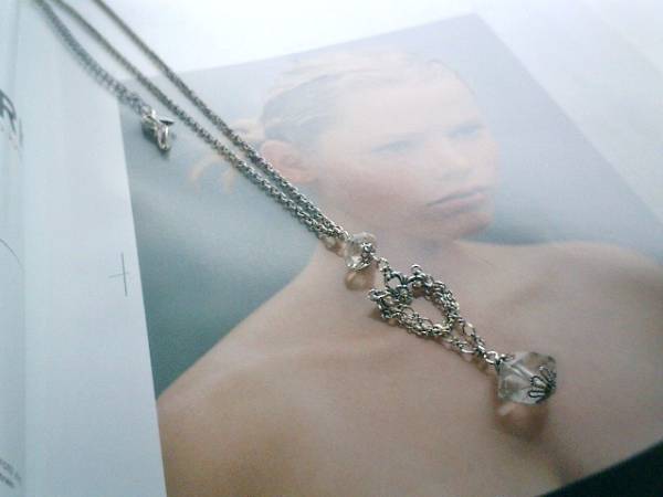 私的コレクションシリーズです♪蒼い薔薇をイメージして・・繊細なクォーツを集めたネックレスです♪座金でおめかしした12×8ミリ位と19×14ミリのブラックルチルのラフカットはジルコニアのデザインチャームを合わせました♪アンティークモダンな表情です♪長さは70センチ+アジャスター13センチで最長83センチ位です♪お揃いのネックレスやブレスレットも出品しています♪♪シンプルで飽きのこないいつまでも着けられるデザインを考えて作りました!ハンドメイドをご理解頂いてノークレーム、ノーリターンでお願いします