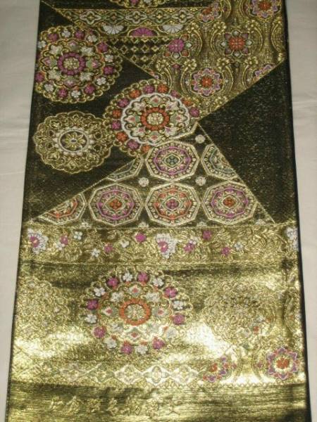 仕立てつき訪問着用帯 西陣 絹80%その他20% 黒金地(裏地はくろ) 新品み仕立て品ですがこのお値段で仕立てつきで、納品です。なお、最終日まで待っていただかなくとも、入札した時点でオークションは終了し落札者となります。お値段的にもお安く設定いたしましたお買い得品です(西陣帯です)。もちろん芯込みの仕立て付きですが、仕立てなしの場合でも金額は変わりません。