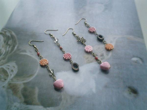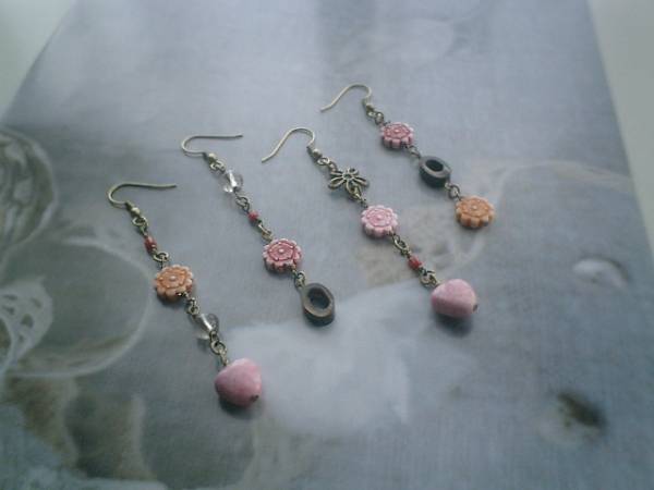 仏蘭西映画の恋人・・シリーズです♪やさしい色を集めて・・ふんわりやさしい色を合わせたキュートなピアス4本セットです♪デザイン違いの4本セットです♪色々な組み合わせで楽しんでいただけます♪それぞれペアでもお作り出来ます♪10ミリのハートのロードナイト、6ミリの丸玉のスモーキークォーツや10×8ミリのリングシェル、お花のチャームやお花の樹脂ビーズやストライプのとんぼ玉を合わせて大人のロマンチックしています♪長さは左から8.5センチ、8.2センチ、8.5センチ、7.2センチ位です♪イヤリングにも変更出来ます♪お揃いのネックレスやブレスレットも出品しています♪シンプルで長く着けていただけるデザインを考えて作りました♪♪ハンドメイドをご理解頂いてノークレーム、ノーリターンでお願いします。