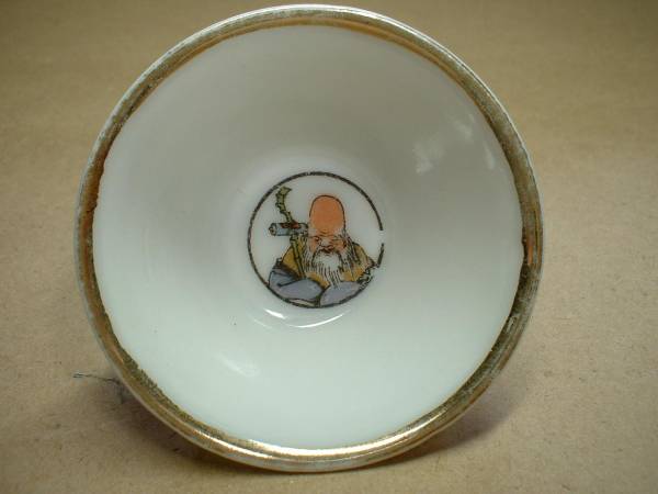 明治期頃の瀬戸 見込み、福禄寿・盃です。口径5.5×底2.5×高3センチです。キズはありません。