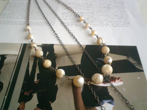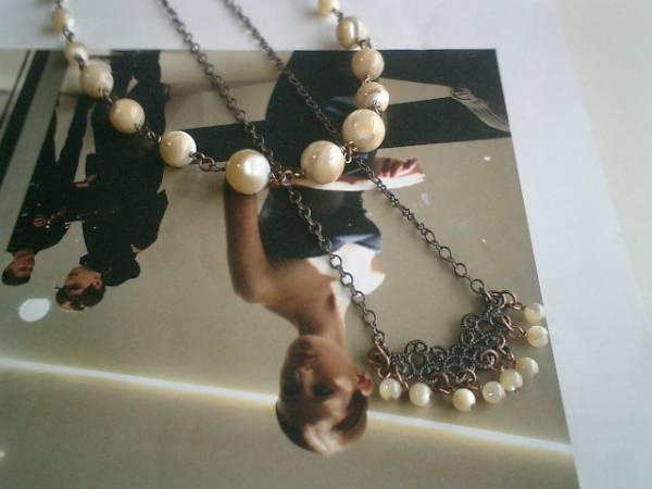 アート・クチュール・・シリーズです♪大人色のベージュ・・シックなマザーオブパールのネックレス2点セットです♪色々な組み合わせで楽しんでいただけます♪♪6ミリ、8ミリ、10ミリの丸玉のマザーオブパールは合わせやすいシンプルなデザインです♪長さは全長66センチ位で調節自由です♪クラシカルなデザインチャームには4ミリのマザーオブパールを合わせてキュートな表情です♪長さは67センチ+アジャスター13センチで最長80センチ位です♪3本セットや単品やお揃いのブレスレットも出品しています♪♪シンプルで長く着けていただけるデザインを考えて作りました♪ハンドメイドをご理解頂いてノークレーム、ノーリターンでお願いします