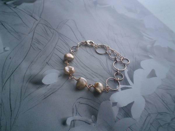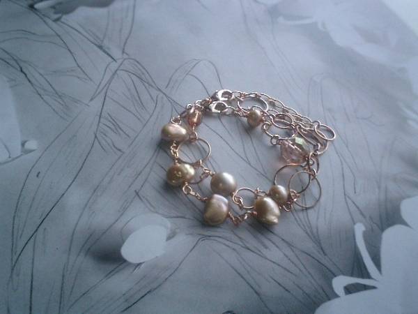 恋愛映画のレシピ・・シリーズです♪パールに恋して・・シックなベージュピンクの淡水パールのブレスレット2本セットです♪ピンクゴールドのチェーンを合わせて甘すぎない大人のロマンチックしています♪6ミリから9ミリ位までのポテトの淡水パールに6ミリから10ミリのチェコビーズやデザインチェーンを合わせてさりげなく華やかな表情です♪♪長さは全長23センチ位で調節自由です♪♪10ミリ位の芥子パールにはデザインチェーンを合わせて可憐な表情です♪長さは全長23センチ位で調節自由です♪それぞれ単品やネックレスも出品しています♪♪シンプルで飽きのこないいつまでも着けられるデザインを考えて作りました!ハンドメイドをご理解頂いてノークレーム、ノーリターンでお願いします