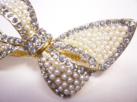 パールとラインストーンで、りぼんのモチーフを埋め尽くしました。 | ||