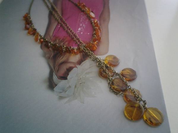 パンク・ストリート・・シリーズです♪やさしい恋人・・キュートな琥珀とヴィンテージビーズのネックレス2本セットです♪2本重ねて、単品でと色々に楽しんでいただけます♪琥珀は8ミリから13ミリ位までのさざれです♪長さは全長55センチ位で調節自由です♪チョーカー風にされてもブレスにされても可愛いです♪長い方のネックレスは15ミリのコインのヴィンテージビーズをトップにラリエット風のデザインです♪琥珀色のヴィンテージビーズがアンティークモダンな表情です♪長さは全長85センチ位で調節自由です♪トップは9センチ位です♪それぞれ単品やブレスレットも出品しています♪シンプルで飽きのこないいつまでも着けられるデザインを考えて作りました♪ハンドメイドをご理解頂いてノークレーム、ノーリターンでお願いします