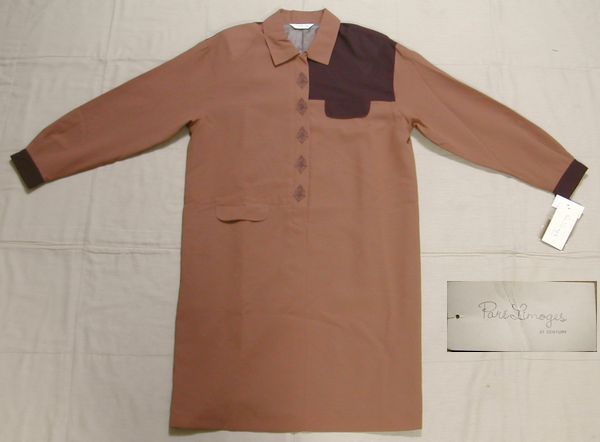 ■タグ付新品:丈の長いオーバーブラウス 茶と紫の無地11R DmP83