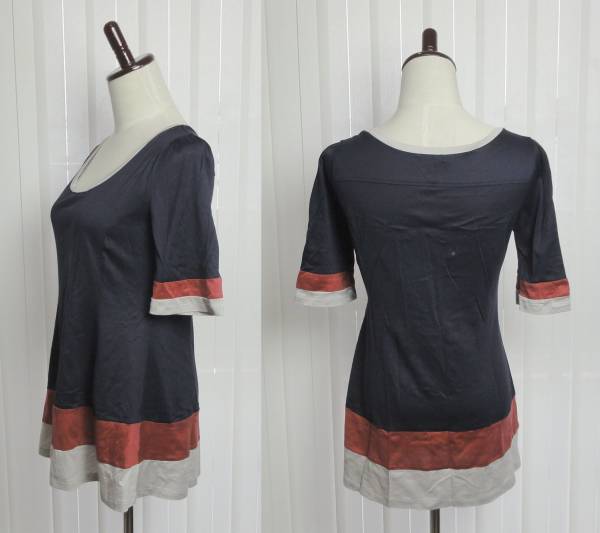 ポイント | 紺色チュニックです。 裾には赤×ベージュのライン入りです。 ・セレクトショップで購入しました。 ・とても肌触りのいい生地です。 |