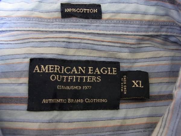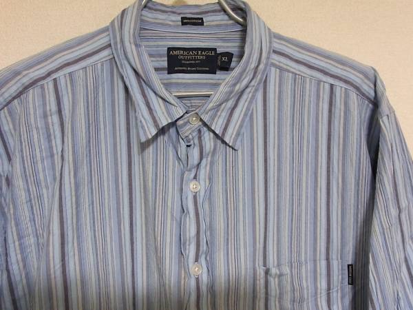 即決!USA古着●AEアメリカンイーグルストライプデザインシャツXL!アメカジレア!アメリカで買ってきましたカジュアルブランドとして有名なアメリカンイーグルのストライプ長袖シャツです。カラーは写真を参考にして下さい。表記サイズXLで着丈(後ろ)約79cm、身幅約65cmです。素人採寸ですので多少の誤差はご了承お願い致します。状態は古着ですので、ある程度の着用感あります。特別目立つキズ、よごれはありませんが、あくまで古着として考えてください。古着にご理解のある方の入札お願いします。定形外郵便または、ゆうパック着払いでの発送になります。他にもいろいろ出品しています。よろしくお願いします。