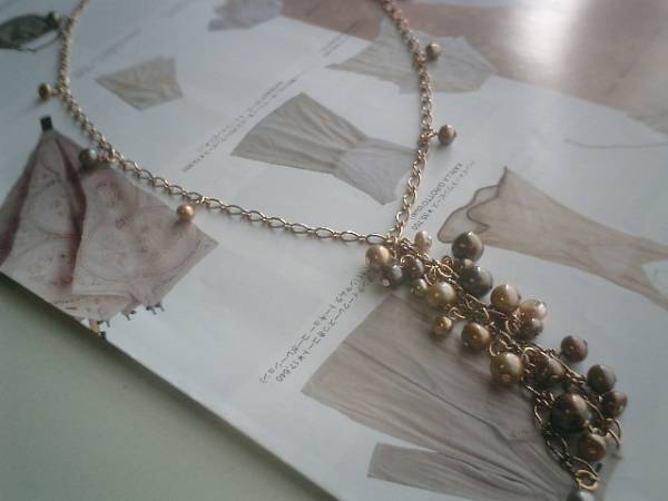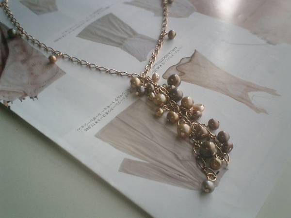シック・フレンチの定義・・シリーズです♪パールを集めて・・個性的なブロンズ・ベージュの淡水パールを集めたネックレスです♪シックな色とデザインがキュートな表情です♪淡水パールは4ミリから8ミリ位までのポテトやバロックなど大きさ違い、デザイン違いです♪ラリエット風のネックレスは全長90センチ位で調節自由です♪トップの長さは9センチ位です♪お揃いのブレスレットやピアスも出品しています♪♪シンプルで飽きのこないいつまでも着けられるデザインを考えて作りました!ハンドメイドをご理解頂いてノークレーム、ノーリターンでお願いします