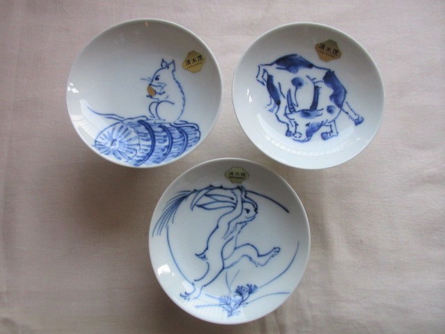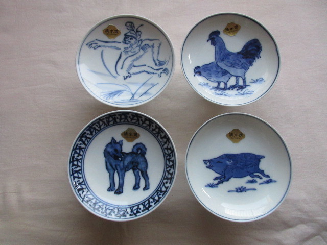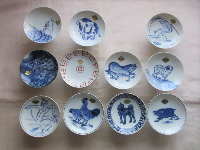 清水焼の芳山作盃です。約40年前に1年1個ずつ11年かけてコレクトしたものです。寅年の盃がありません。1年にだいたい100個くらいしか作らなかったとのことです。