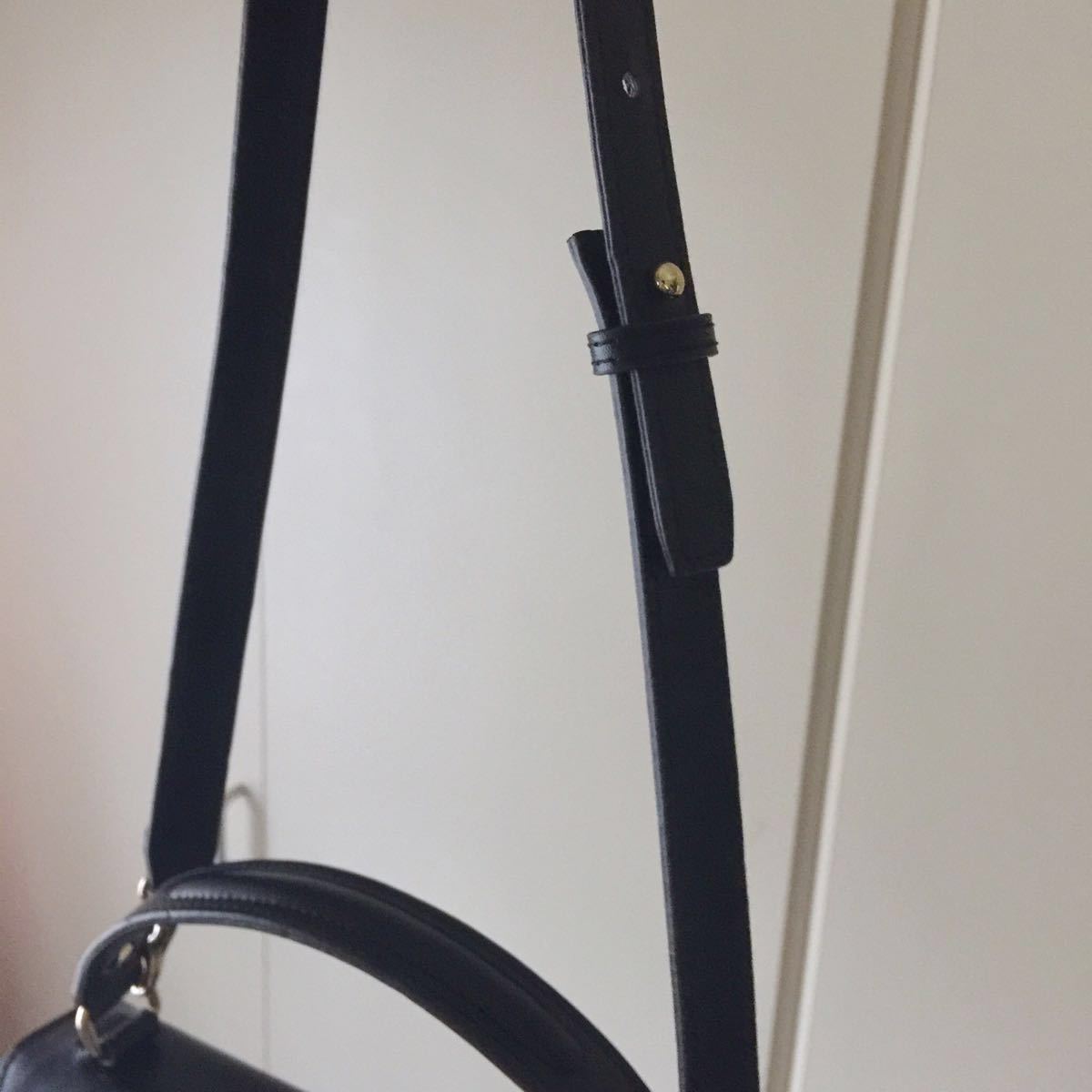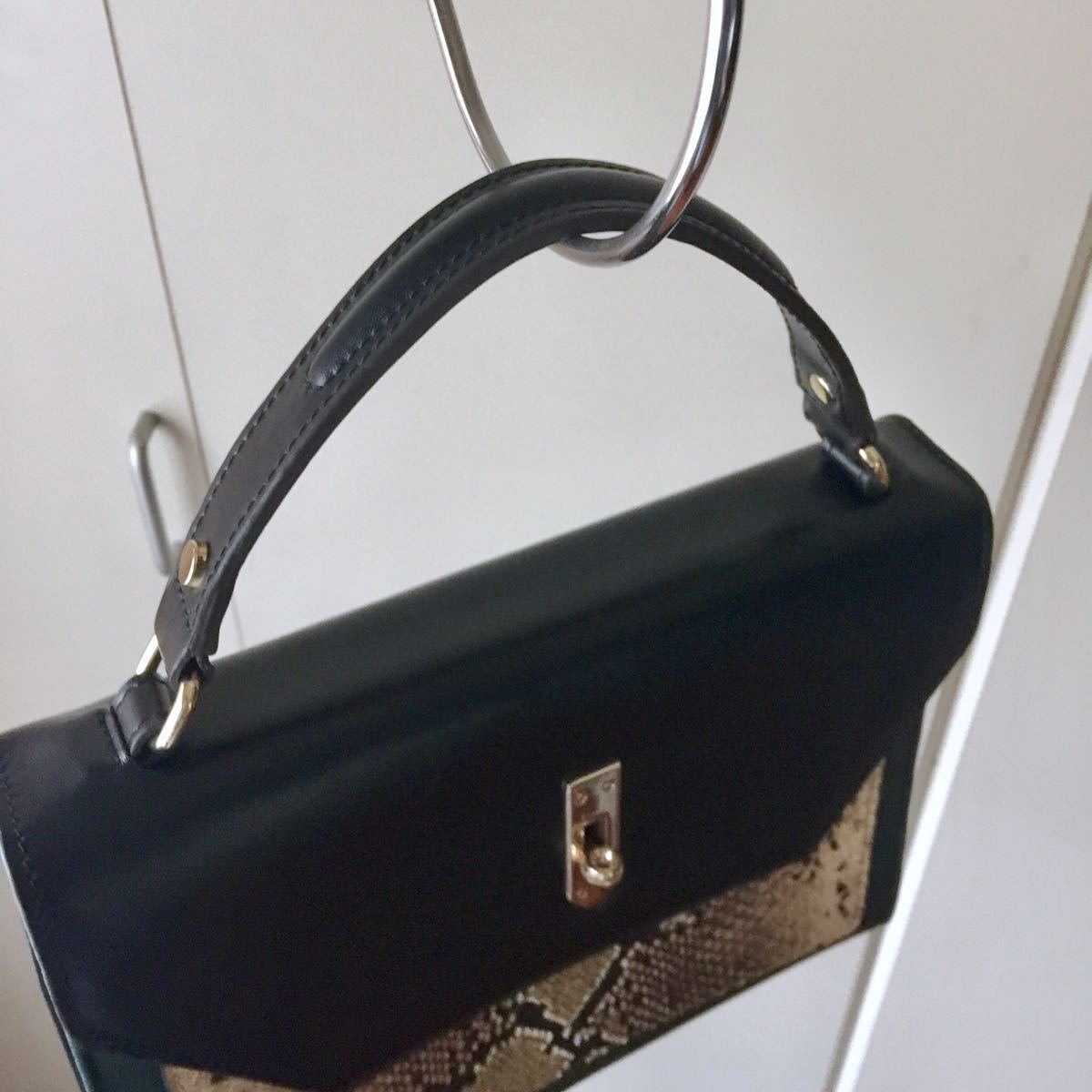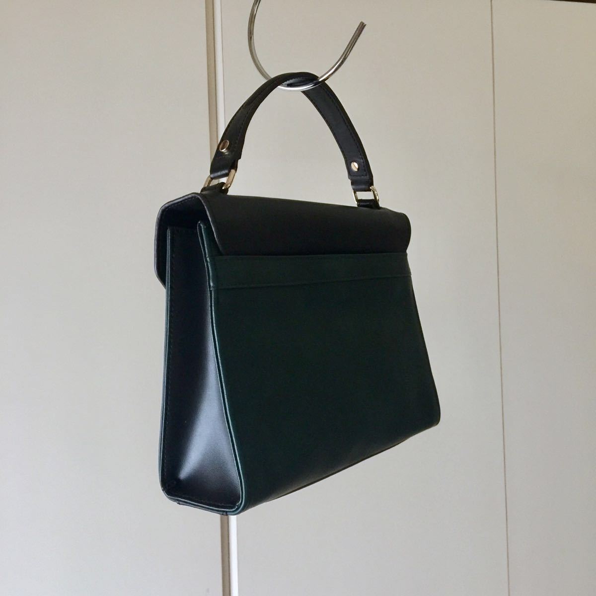 上品なデザイン、サイズ感のショルダーハンドバッグになります。PUレザーになりますが、定価が張るだけに質感やハンドルの厚みなども高級感ある作りになっています。金具パーツもしっかりしたものが使われ、アクセントのゴールドカラーとなります。