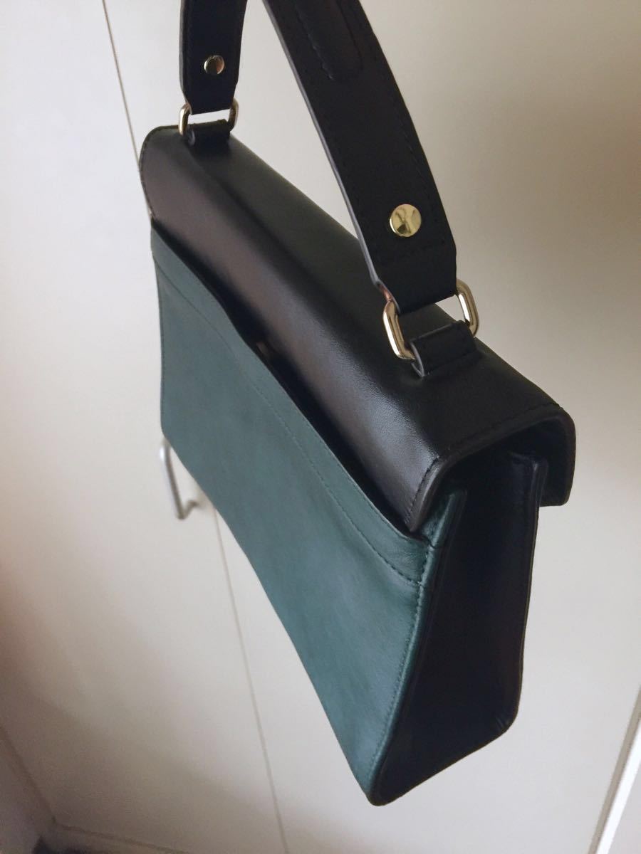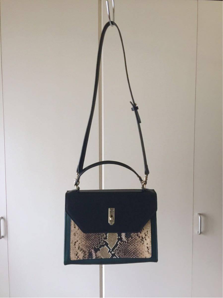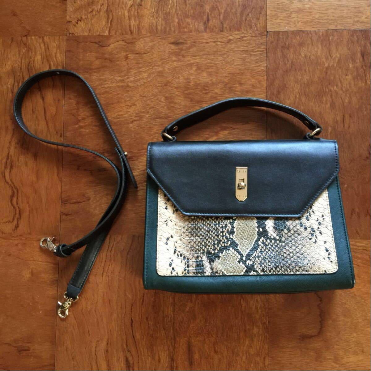 上品なデザイン、サイズ感のショルダーハンドバッグになります。PUレザーになりますが、定価が張るだけに質感やハンドルの厚みなども高級感ある作りになっています。金具パーツもしっかりしたものが使われ、アクセントのゴールドカラーとなります。