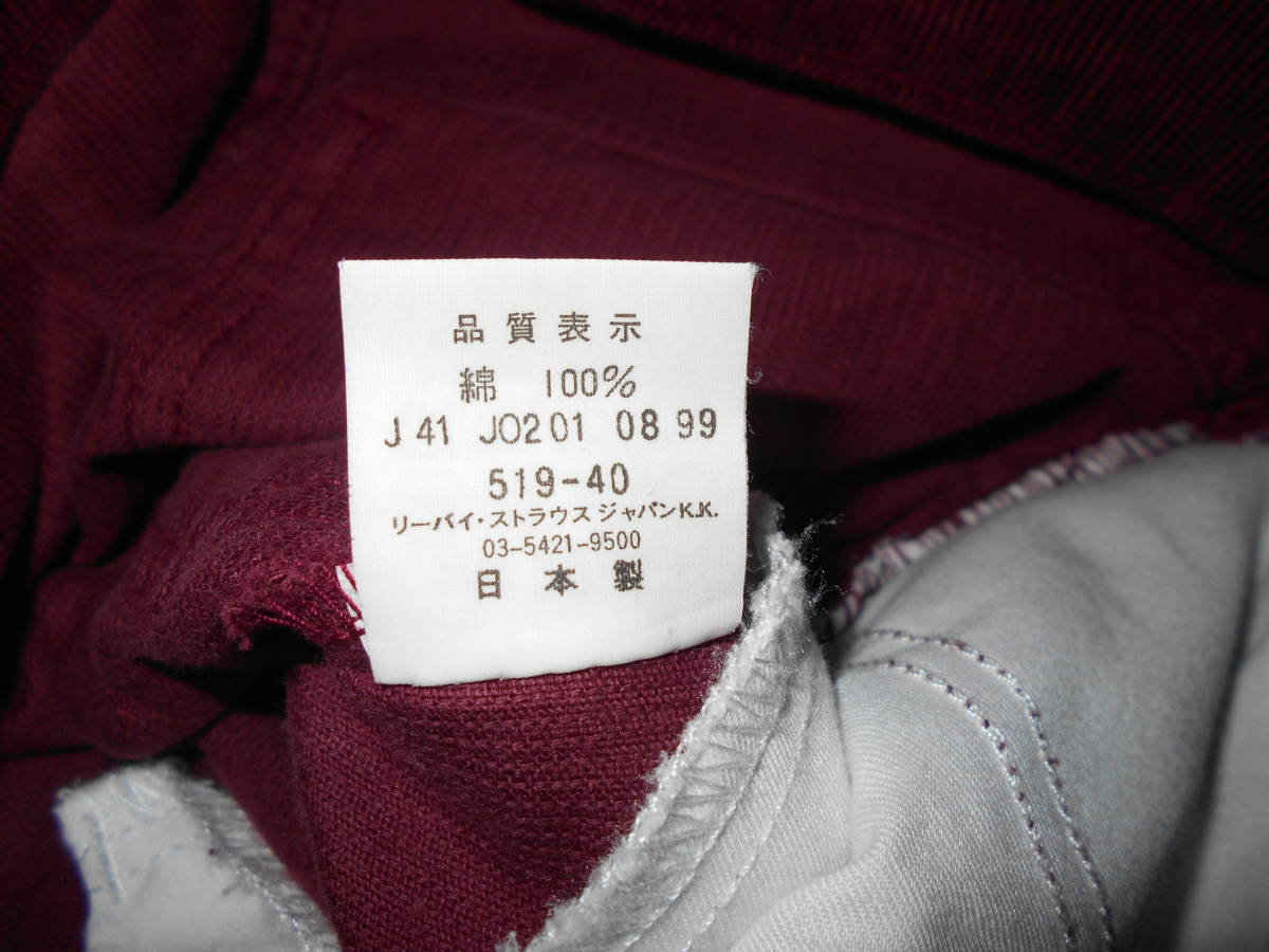 1999年製 21年前生産 リーバイスジャパン正規規格、コーデュロイ素材や随所の縫製加工、リベット補強の細部までクウォリティー高い MADE IN JAPAN プロダクト