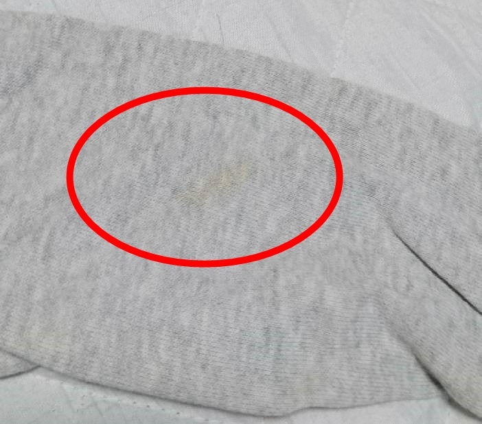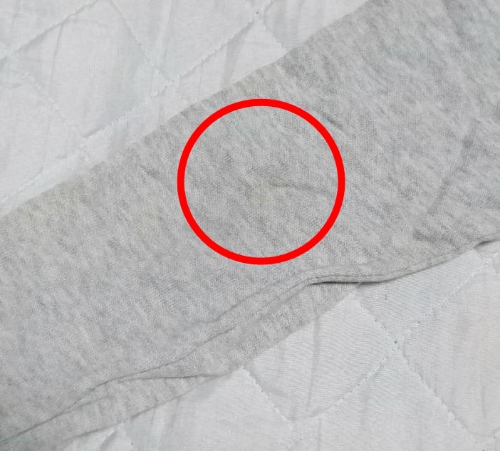 両袖口黄ばみ、袖汚れ、右ヒジ補修跡あります。