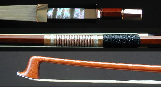 ★バイオリン楽弓★名職人RONG-DI MA作★E.Sartory(サルトリー)レプリカ 出品価格は消費税込み表示です。 お求めの際には入札前に是非試奏されます事をお薦め致します。 今回出品させて頂くバイオリン楽弓は Eugene Nicolas SARTORY 作の楽弓のレプリカです。 しなやかさと機敏さを兼ね備えている点が特徴です。 ラウンドスティック、大変美しい仕上げになっています。 やろうとする動作にしっかり応えてくれる反応性も良し、 運弓が楽に感じられ、弓元の切返し操作でその心地良さが実感出来ました。 ゆっくりしたスピカートから自分の限界点までの 高速のスピカートが均一に繋げ操作性も大変良い弓です。 良質フェルナンブーコ材で製作され、音色が大変良い弓です。 ♪特徴 最上の厳選フェルナンブーコ材、 全長:73cm、 重量:61.2g、 高級黒檀フロッグ、 アイは外径Φ7.5mm、内径Φ4.0mm、 14K、ローズ・ゴールド、 馬毛は全長125cm強のモンゴリアンを利用した最上毛、 (何と残った馬毛から1/16Vnサイズ用の毛が取れる長さで MA先生に実際見せて頂きました。) 2018年7月、ドイツのハンブルクにて製作、 刻印が棹上にあります。 実物のサルトリーはヘッドを真上から見たとき、 非対称で山の稜線も曲がっているのですが 今回の弓はお写真では判りにくいですが 若干だけその特徴を盛り込んでいます。 ♪留意点 フロッグの後ろに番号が書かれたシールが 貼ってある場合がありますが納品まで剥がさないでください。 (傷はありませんが確認したい場合、 剥がした後に付けておいてください。) ♪サービス 御希望でしたら一回目の毛替えはRONG-DI MA自身が 棹の具合を再確認するのと同時に無料でやってくれるそうです。 【御参考】 ♪製作者のRONG-DI MAは現在の中国の弓製作者の第一人者で 北京中央音楽院の林教授、カナダの音楽大学教授、 上海クァルテットの全員、等々のプロのバイオリニスト(ソリスト)達にも 大変人気のある弓製作者です。 ♪2002年のチャイコフスキーコンクールVn演奏部門第二位の方も RONG-DI MAの弓で入賞していますし メニューヒン国際コンクールジュニア部門優勝者においても RONG-DI MAの弓を使って優勝を成し遂げた方がいます。 ♪その後、アイザック・スターンに才能を見出されたJIAN WANG(王健)、 ニューヨークのジュリアード音楽院教授のチョーリャン・リン(Vn) にも提供されました。 【提供履歴】 過去にはKittel、Sartory、Peccatte、Tourte、Voirin、Persoit、 Lupo、Pajeot 、V.FETIQUE、 N.Simon、Tubbs、MALINE等 のモデルをお譲りしており、皆様に気に入って頂いております。 現役のプロの方にもこの弓の性能を確認して頂き、納品させて頂いております。 尚、RONG-DI MAは1996年にもアメリカで定評のあります VSAコンクールにバイオリン弓、ビオラ弓、チェロ弓、コントラバス弓の 4本を出品し全ての作品で賞を取っています。 RONG-DI MAは北京で行われた国際弓製作コンクールの審査も務められ、 前回優勝したギョーム(息子)に金賞を授与しています。 MA先生に「フェルナンブーコ材にはどのような種類があるのですか?」と 聞きましたところ、「50種程もあるのですが大別すると2種に分類され・・・・」と 永遠話が尽きませんでした。本当に凄い研究家だと思いました。 RONG-DI MAの作品は楽弓に対する熱心な研究がにじみ出るかのように その製作誠意が伝わってきます。棹はおろか、ネジ、フィッティングまで 全てRONG-DI MAが製作していて出来る限り当時の再現を試みています。 勿論、製作のための道具まで彼自身で手作りされています。 製作者RONG-DI MA希望の提供価格は希望落札価格に設定させて頂きました。 お求めの際、先に入札せず、是非試奏されます事をお薦め致します。 先に落札し、万が一の返品となるといかなる場合でも 送料と落札手数料を差し引いた御返金になってしまい、 お客様のご負担が大きいからです。 (落札手数料は当方でなく、YAHOOが先に徴収します。 当方はその立替は致しません。)