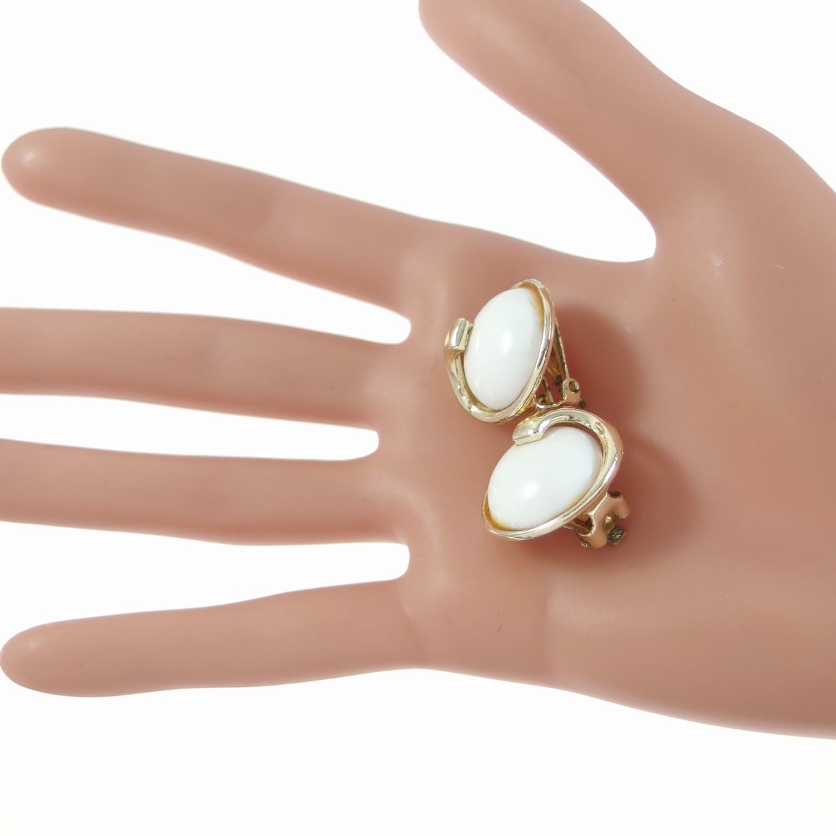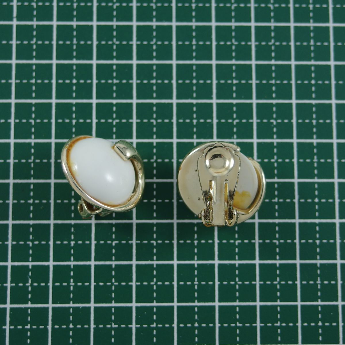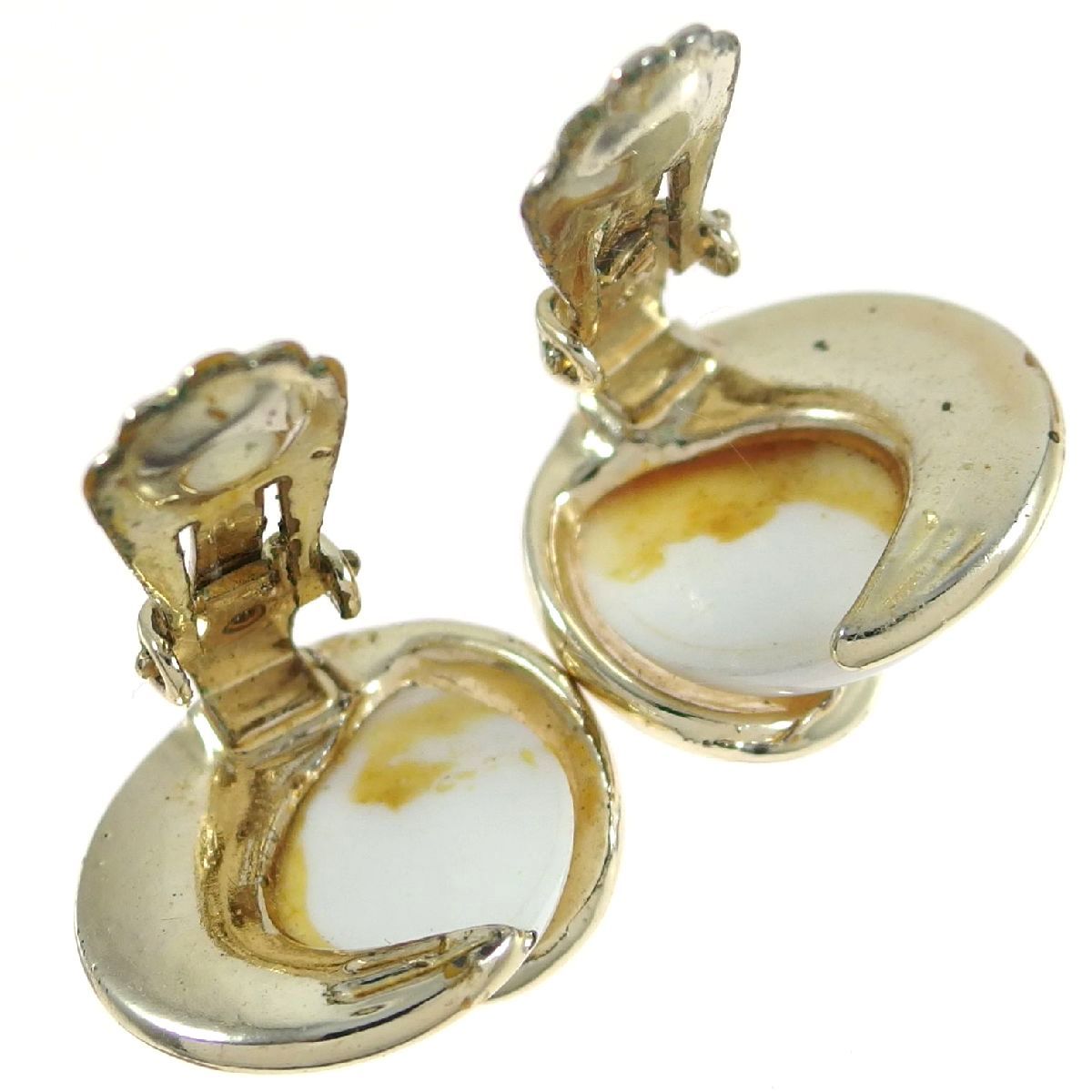 A4515◆ ヴィンテージイヤリング ◆ ホワイトカボション ◆