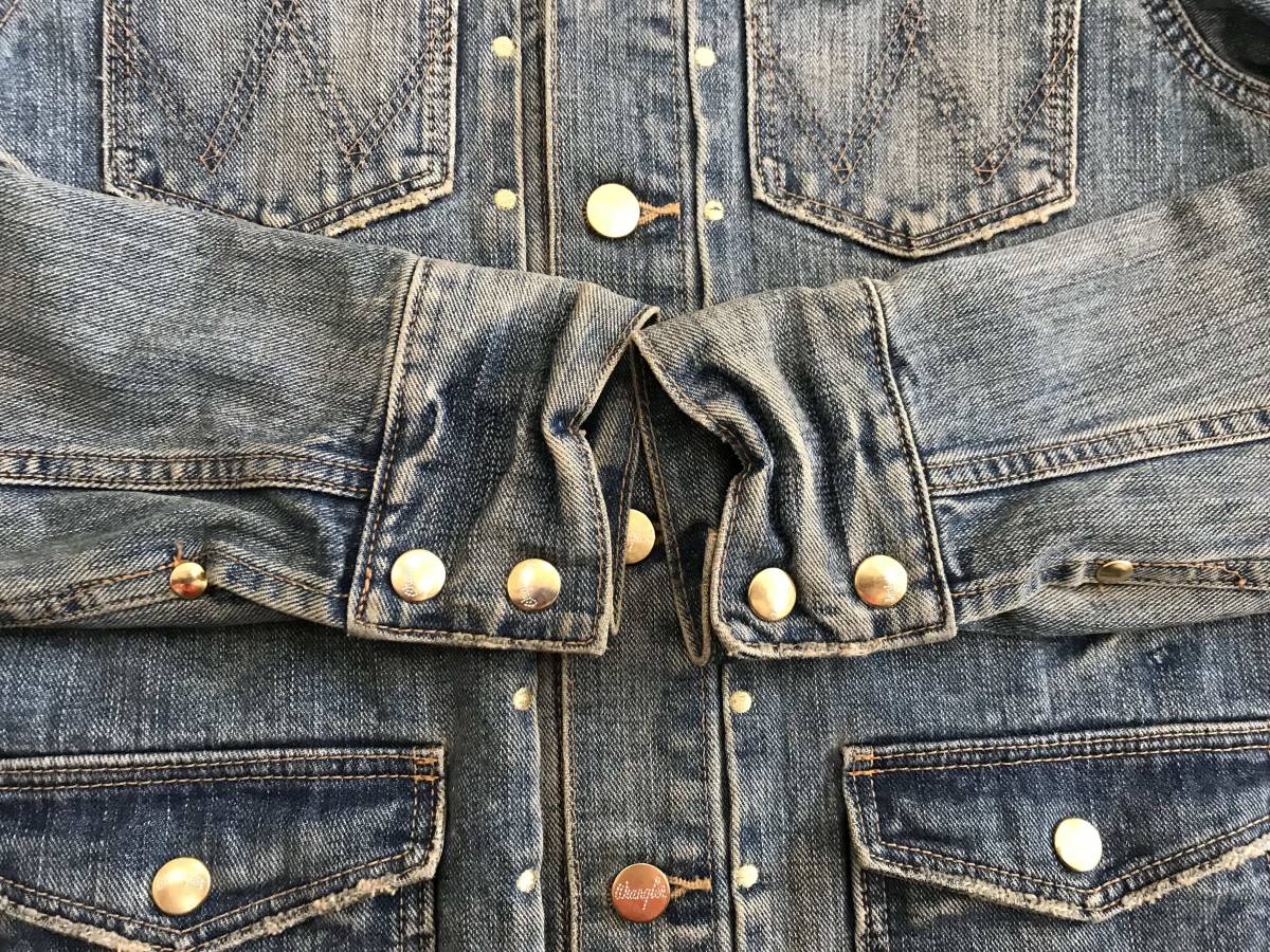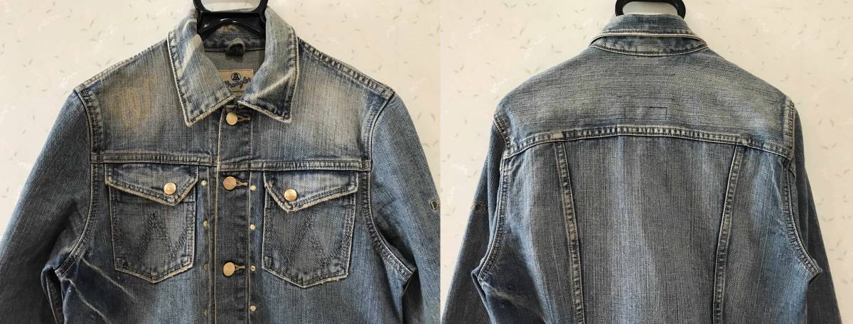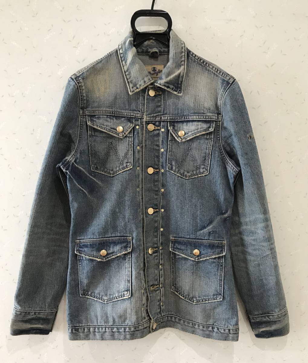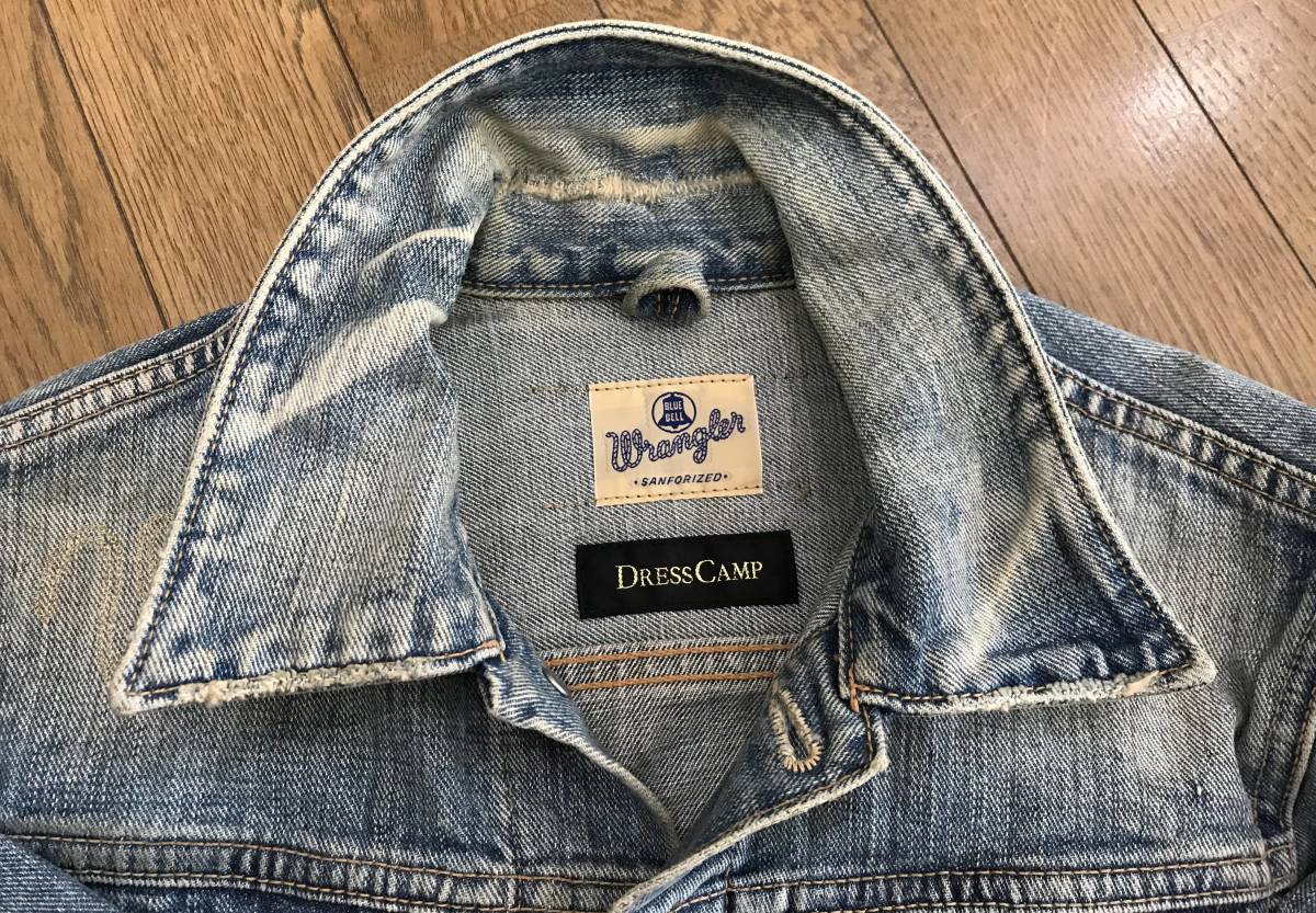 ※ ドレスキャンプ×ラングラー DRESS CAMP×Wrangler BLUE BELL S9064 刺繍 USED加工 ミリタリー デニムジャケットカバーオール M BJAI.AA
