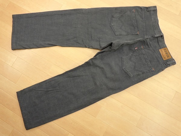 ●日本製、エドウィン465、綿100のコットンパンツです。あくまでも古着のため、ノークレームノーリターンでお願いいたします。使用感は、ございますが、とくにダメージございません。太めのストレートで、色は、ユーズド加工が効いた感じの墨黒のような感じの色合いで、雰囲気抜群です。裾はシングルステッチで、裾上げされております。