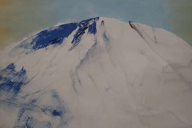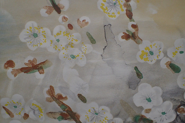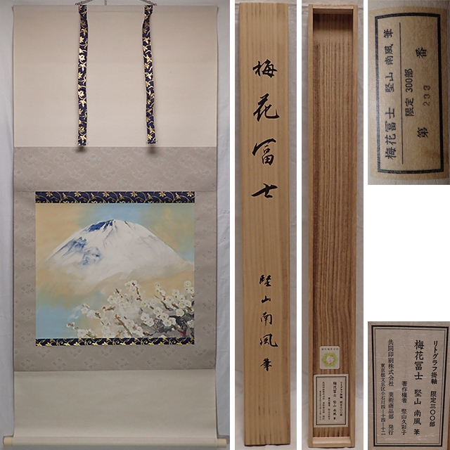 0909 リトグラフ 堅山南風 作 「梅花冨士」掛軸(共箱)233/300です。