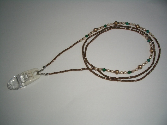 ネームカード用のネックストラップと言えば細い布やヒモなどで出来たものが多いですが、このネックストラップはパール(イミテーション)やビーズ等で仕上げてりとても綺麗です。