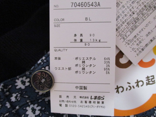 Ω しまむら Ω★90㎝★ 可愛い裏起毛パンツ ブルー 未使用 | |||