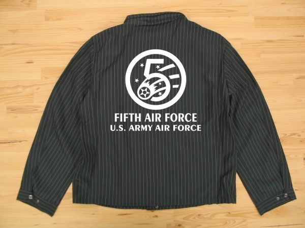 5th AIR FORCE 黒 ジャケット(ストライプ) 白 3XL フライトma-1ミリタリー U.S. ARMY AIR FORCE FIFTH