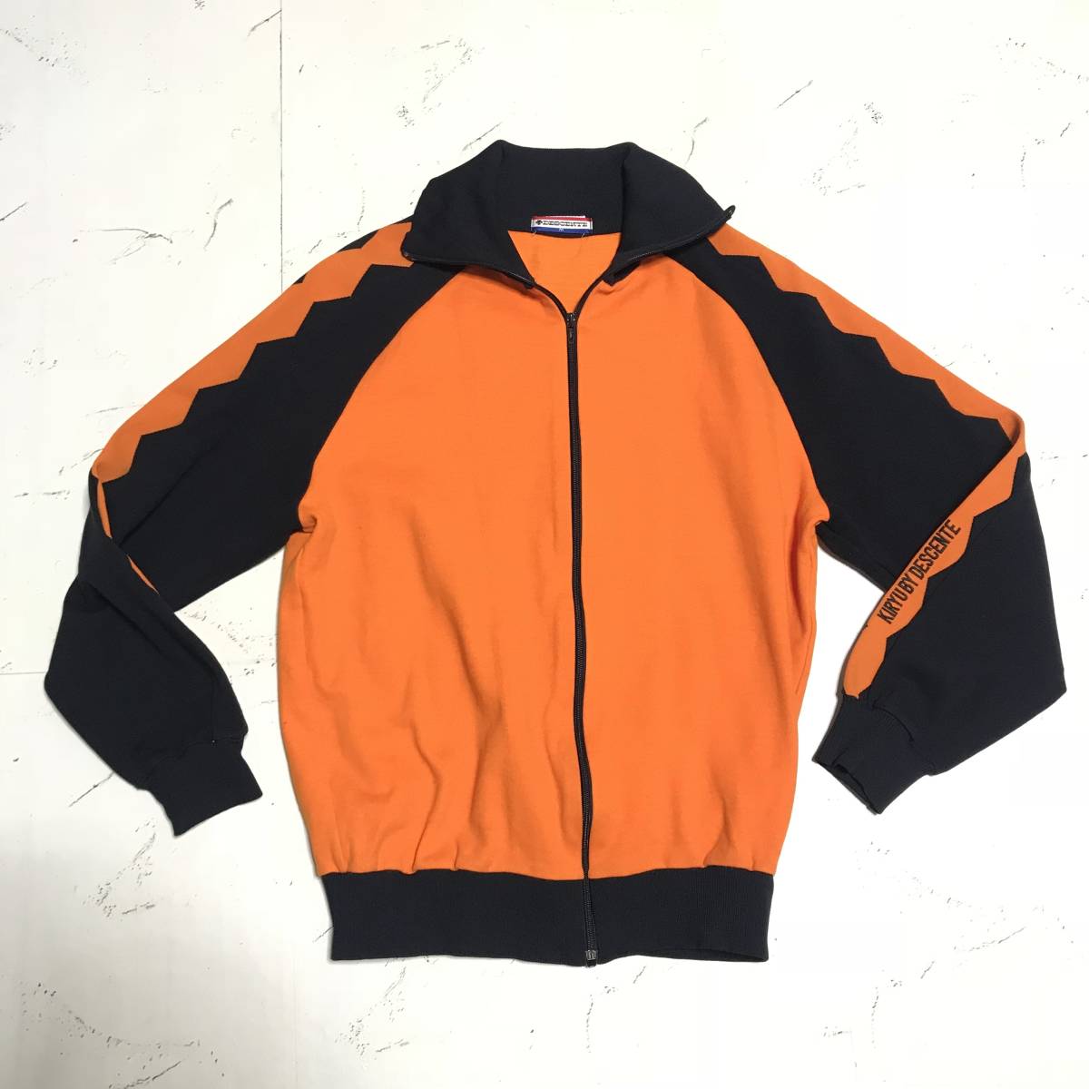 90s★kiryu by DESCENTE デサント★幾何学 切り替え ジャージ トラックジャケット ジップアップ オレンジ size M メンズ