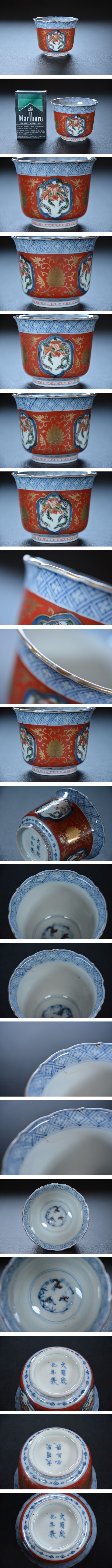 【十三】 古伊万里窓絵鳳凰紋輪花形蕎麦猪口 大明成化年製 江戸期 E 検索用語→A0207向付酒器盃大猪口金襴手