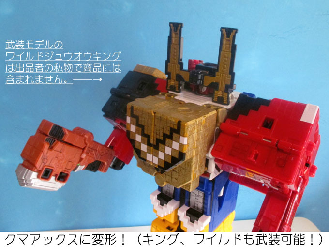 ワイルドジュウオウキングを 武装! ★種類:動物戦隊ジュウオウジャー_動物合体・武装シリーズ ★状態:箱付中古 ★付属品:説明書のコピー(私物のコピーです) ★外観:鼻先に小さい塗装ハゲがあります。他はキレイです。 ★特長:ジュウオウキングへ武装 ・ワイルドジュウオウキング(動物合体 DXジュウオウキングと動物合体 DXジュウオウワイルドセット (4-6のバラ売りあり)が動物合体!) ・単体のジュウオウキング、ジュウオウワイルドにも武装ができます。 ★データ 商品名:動物戦隊ジュウオウジャー_動物合体・武装シリーズ ジュウオウキューブウエポン キューブクマ ジャンル:スーパー戦隊 動物戦隊ジュウオウジャー_動物合体・武装シリーズ 発売元:株式会社バンダイ 発売日:2016年5月14日 | |