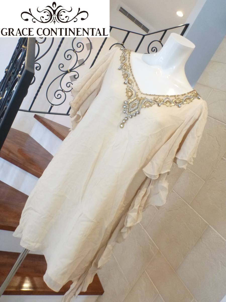 4.5万 グレースコンチネンタル GRACE CONTINENTAL★ベージュ×ビジュー ワンピース 結婚式
